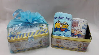 Paket Baby 1 Bulan, Hampers Baby 1 Bulan, Manyek, Manyue, Souvenir Ultah, Souvenir Aqiqah, Mug, Handuk Bordir, Teko Susun, Jam Dinding, Tas, Bantal, Selimut, Mangkok, Piring Costum